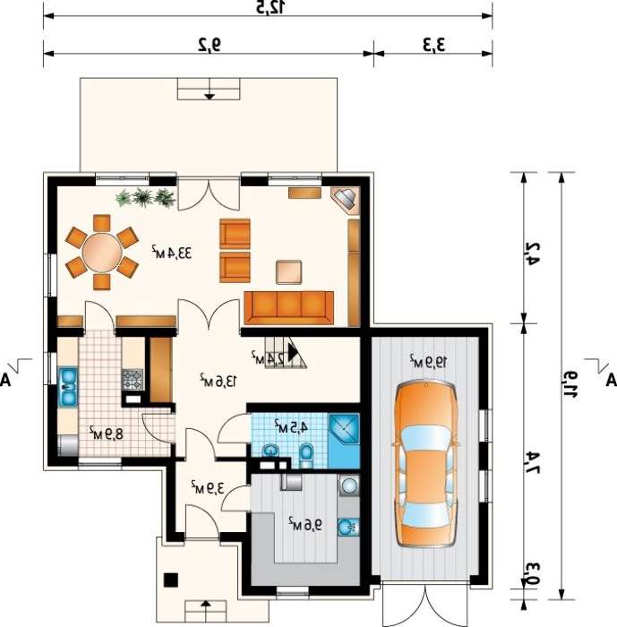Привлекательный проект дома 170 m² с мансардой и гаражом на 1 машину 4M3291