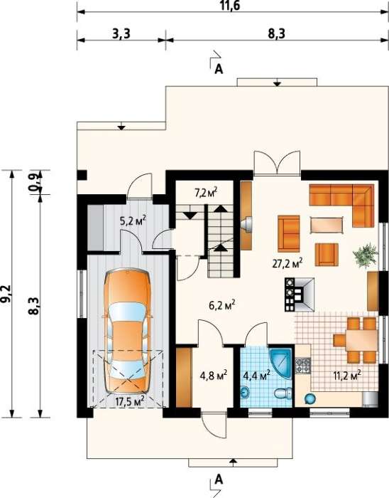 Привлекательный проект дома 180 m² с мансардой и гаражом на 1 машину 4M3289