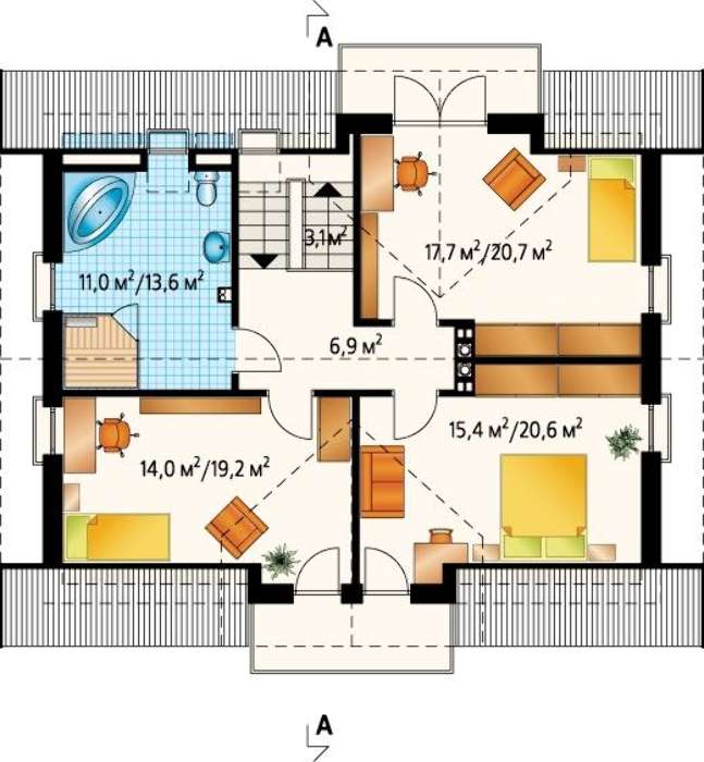 • 4M3289 Привлекательный проект дома 180 m² с мансардой и гаражом на 1 машину