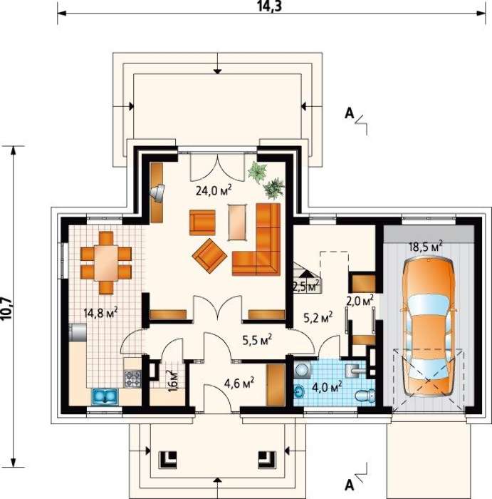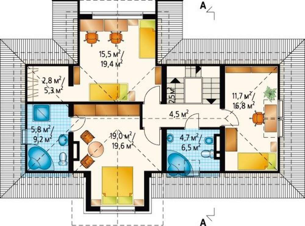 Привлекательный проект дома с мансардой и гаражом на 1 машину