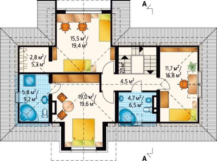 Привлекательный проект дома с мансардой и гаражом на 1 машину 4M3287