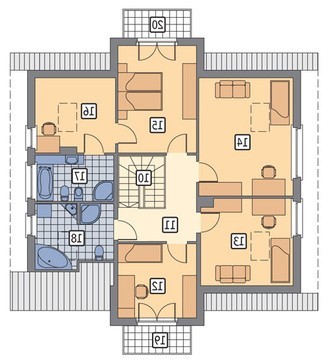 Коттедж с мансардой в 205 кв. м. не только решит жилищные проблемы большой семьи из 4-5 человек, но и обеспечит ее комфортное проживание. Экстерьер дома привлекает удачным сочетанием белоснежных стен и оранжевой крыши, создающим хорошее настроение и ощущение вечного праздника. К месту здесь фасадные панели в светло-бежевом и коричневом колере, они прекрасно вписываются в концепцию внешнего вида здания. Даже серые водостоки и ограждения балконов не портят картинку, а вносят в нее некую изюминку аристократизма и благородства.