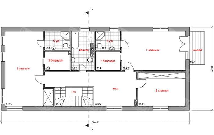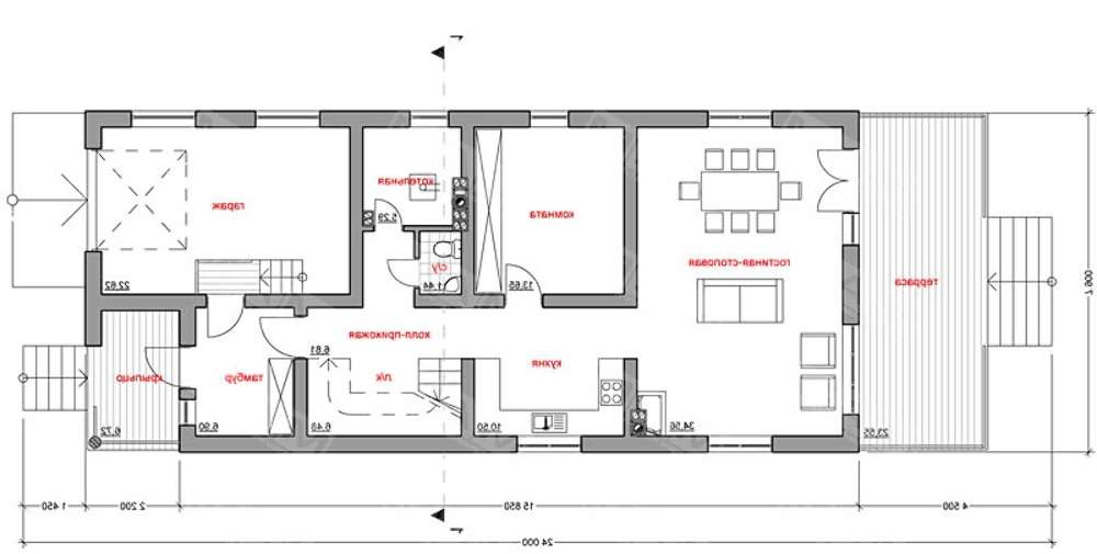 проект в зеркальном отображении позволит органично вписать дом в окружающий ландшафт.