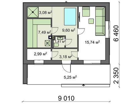 Проект содержит три раздела – Архитектурный, Конструктивный и Инженерный: водоснабжение, отопление, вентиляция, канализация, электроснабжение (приобретается за дополнительную плату) + Пояснительная записка.