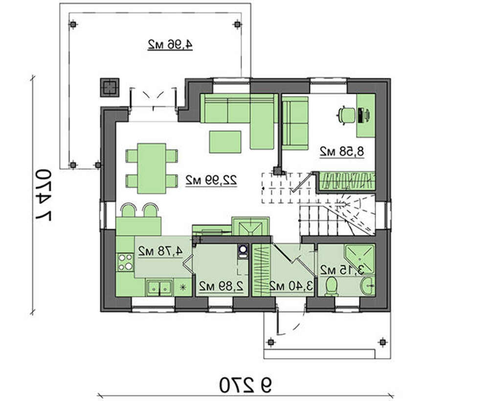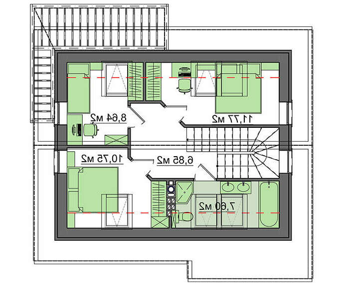 проект в зеркальном отображении позволит органично вписать дом в окружающий ландшафт.