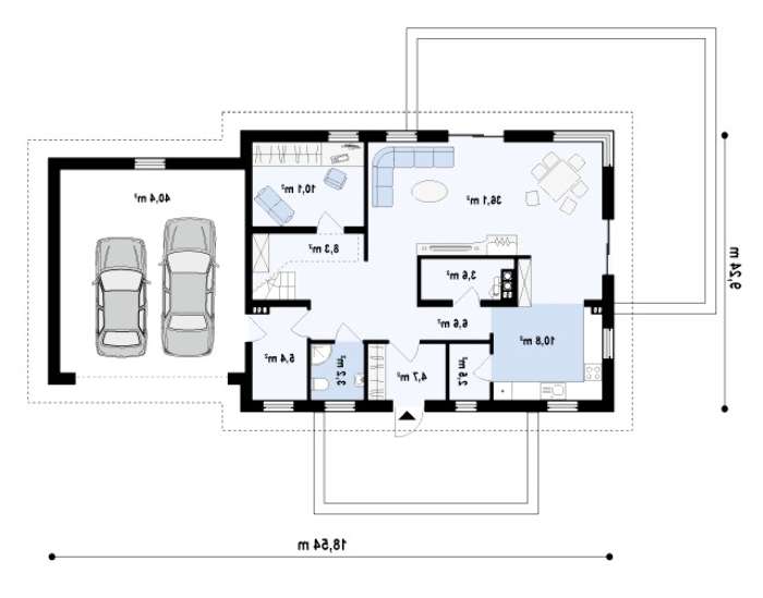 Проект большого дома с гаражом, мансардой и дополнительной спальней представляет собой солидное жилье для семьи из 4-5 человек. Его по достоинству оценят люди, знающие толк в комфортных и функциональных домах.