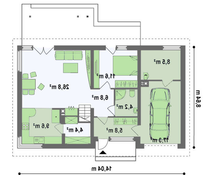 проект в зеркальном отображении позволит органично вписать дом в окружающий ландшафт.