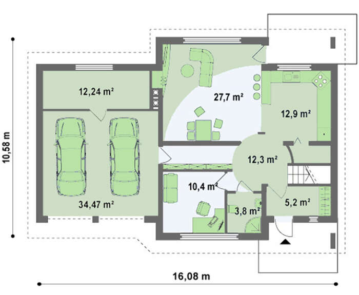 Проект большого коттеджа с мансардой, гаражом на две машины 4M472G
