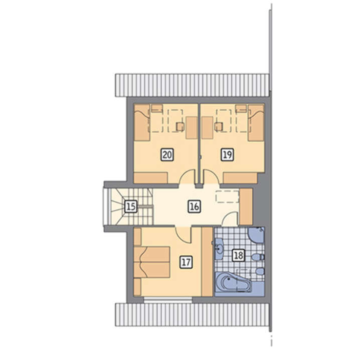 Проект содержит три раздела – Архитектурный, Конструктивный и Инженерный: водоснабжение, отопление, вентиляция, канализация, электроснабжение (приобретается за дополнительную плату) + Пояснительная записка.