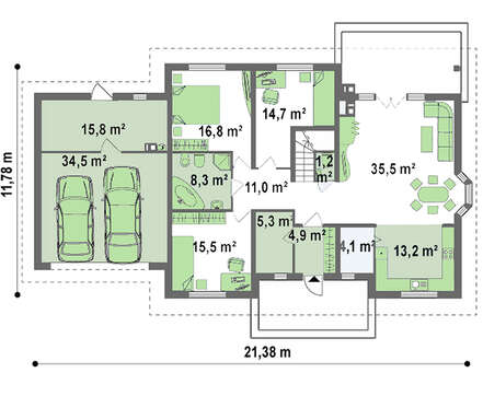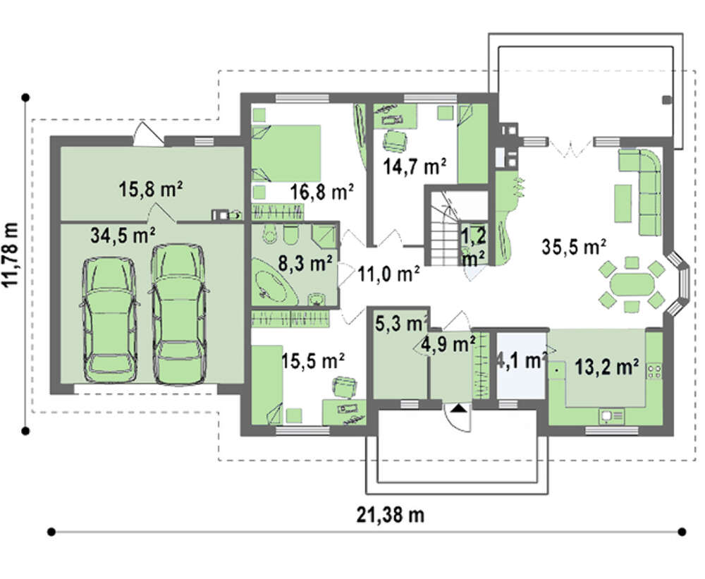 Проект большого красивого дома с гаражом на 2 машины, мансардой, балконом