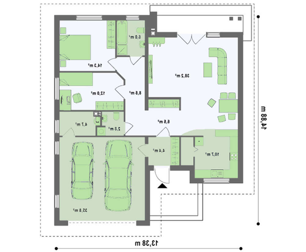 Проект большого одноэтажного дома с гаражом для двух авто 4M530