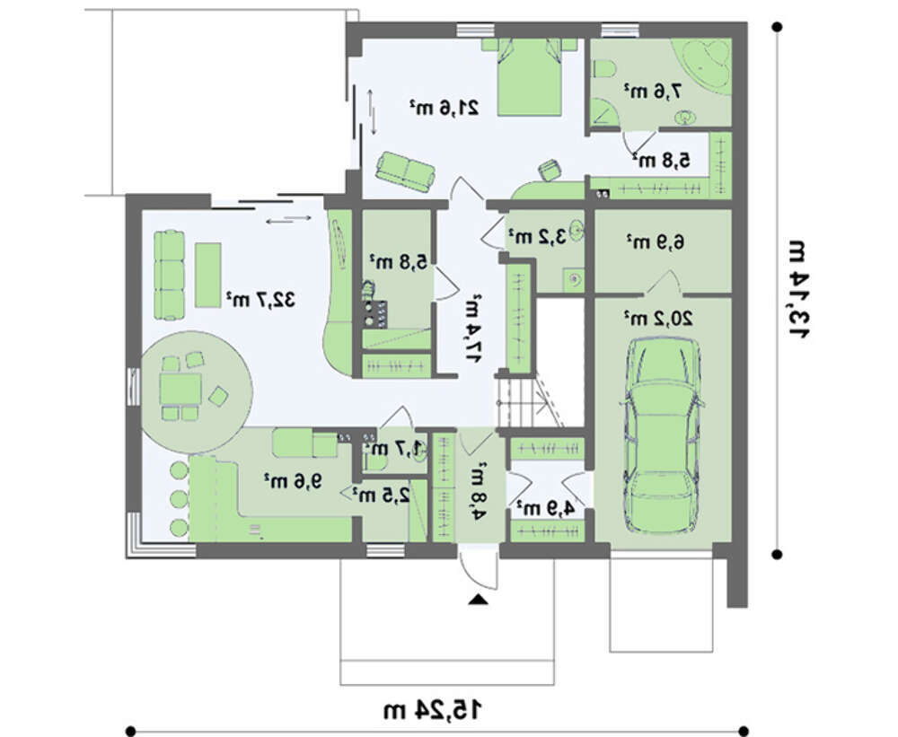 проект в зеркальном отображении позволит органично вписать дом в окружающий ландшафт.