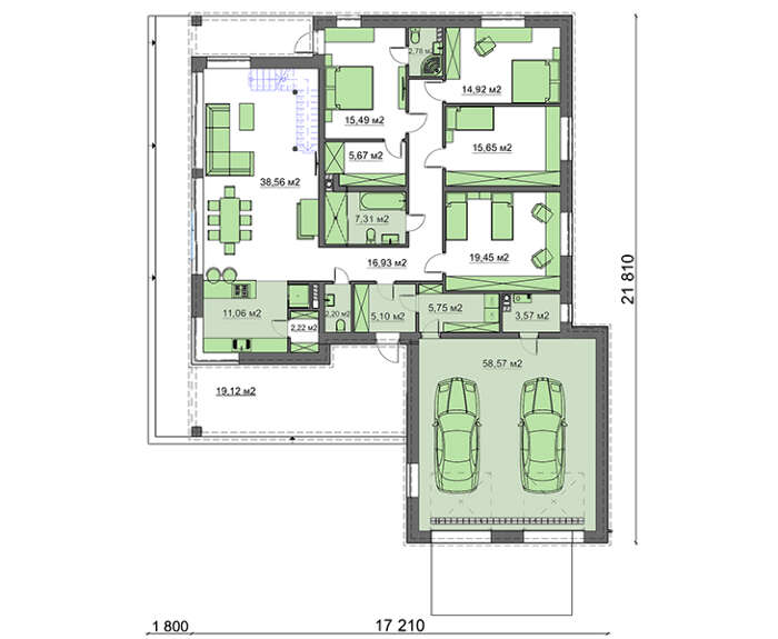 Проект частного дома площадью 408 кв.м. с мансардой и большим гаражом