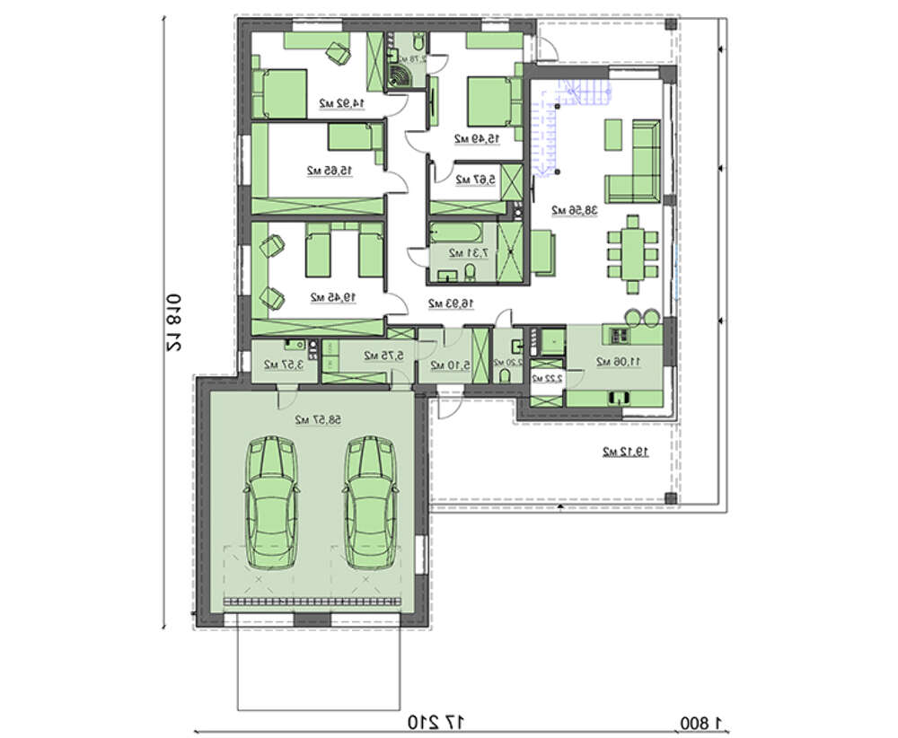 проект в зеркальном отображении позволит органично вписать дом в окружающий ландшафт.