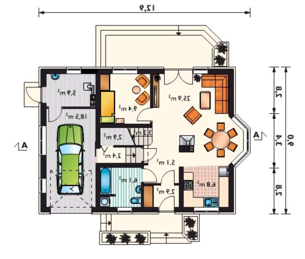 Внутреннее пространство включает все комнаты, потребные для наполненной благоустройствами жизни. Просторный гараж имеет достаточно площади для хранения машины, пристроенная мастерская рассчитана на размещение потребного для обслуживания инструмента.