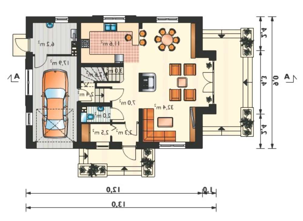 Проект для строительства мансардного коттеджа с пристроенным гаражом 4M3213z