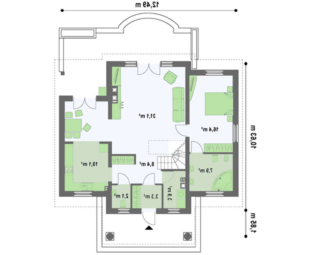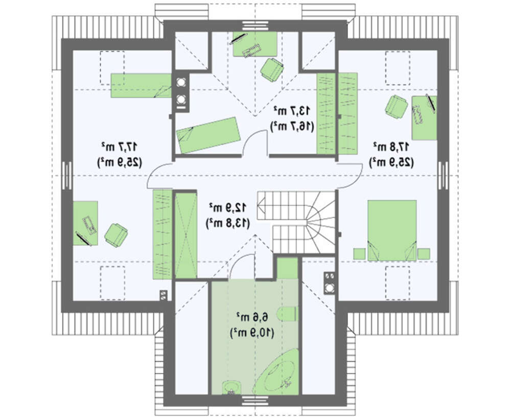 • 4M520 Проект дома 3-мя спальнями на мансарде и дополнительной спальней на первом этаже