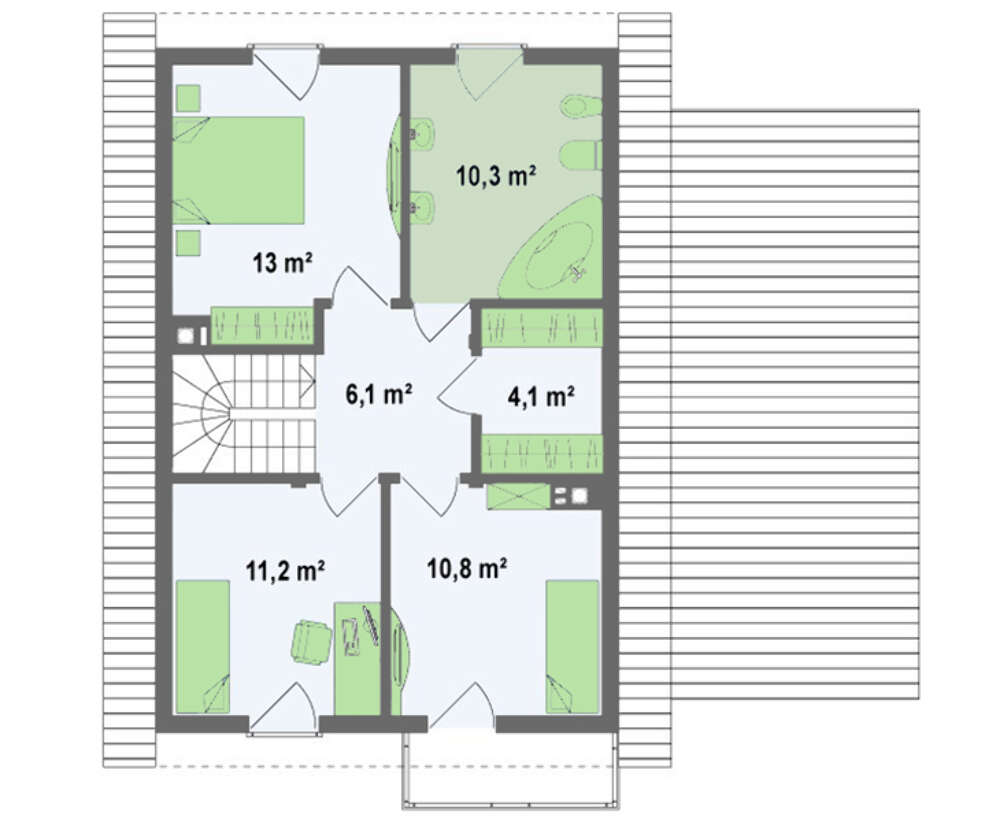 Проект двухэтажного классического просторного дома с мансардой и гаражом | Dom4m.ru | DOM4M.RU