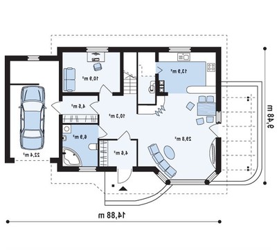 Проект дома с боковой террасой и уютной гостиной на первом этаже | Компания Дом4м Россия | Проектное бюро DOM4M РФ