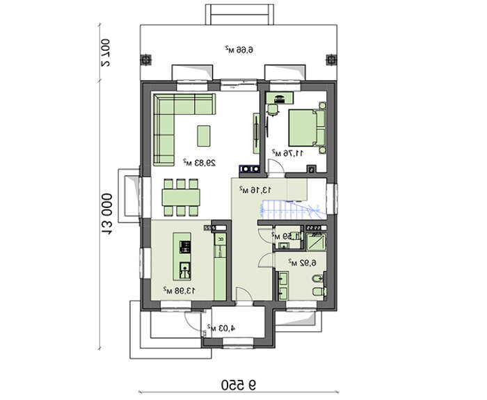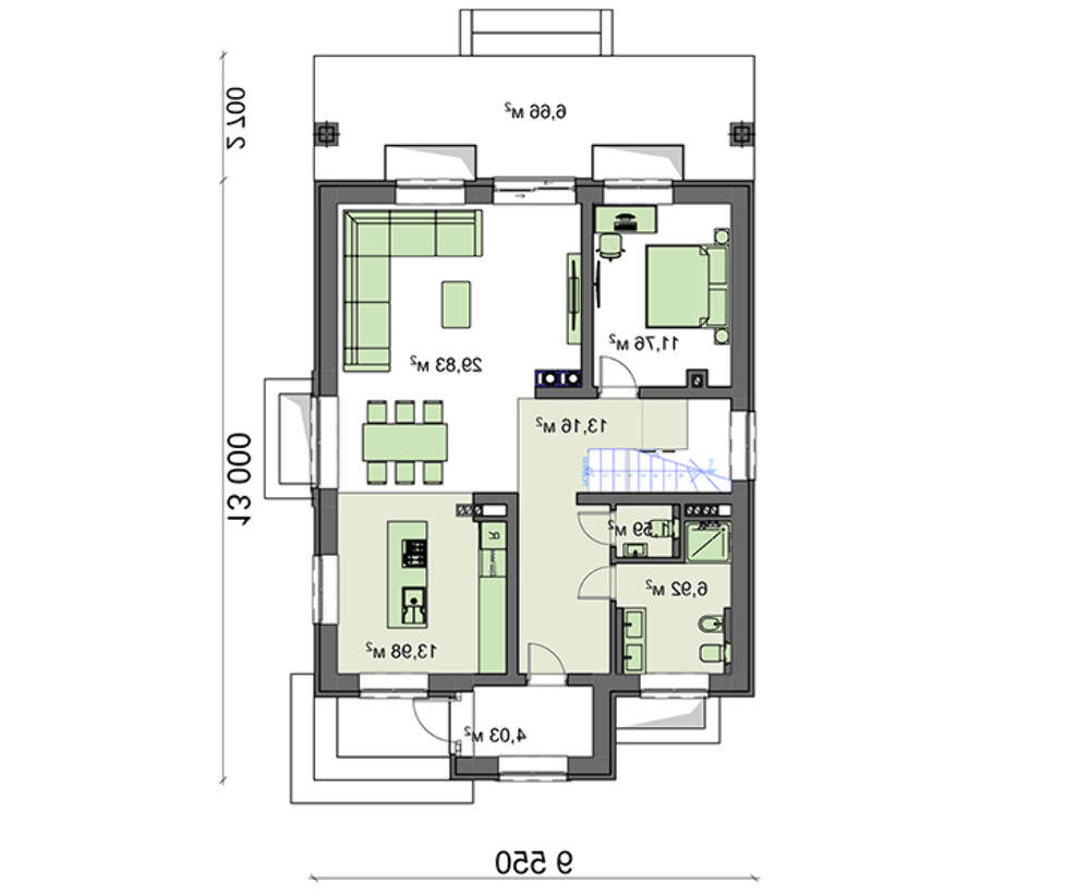 проект в зеркальном отображении позволит органично вписать дом в окружающий ландшафт.