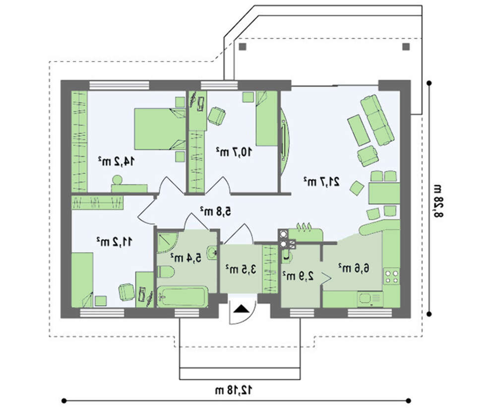 проект в зеркальном отображении позволит органично вписать дом в окружающий ландшафт.