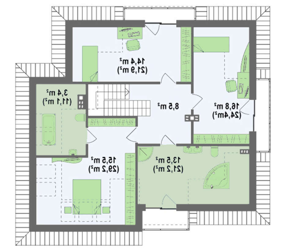 проект в зеркальном отображении позволит органично вписать дом в окружающий ландшафт.