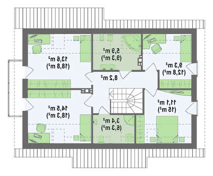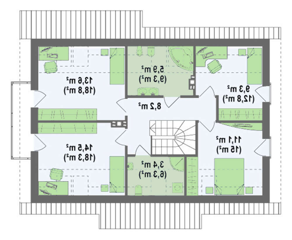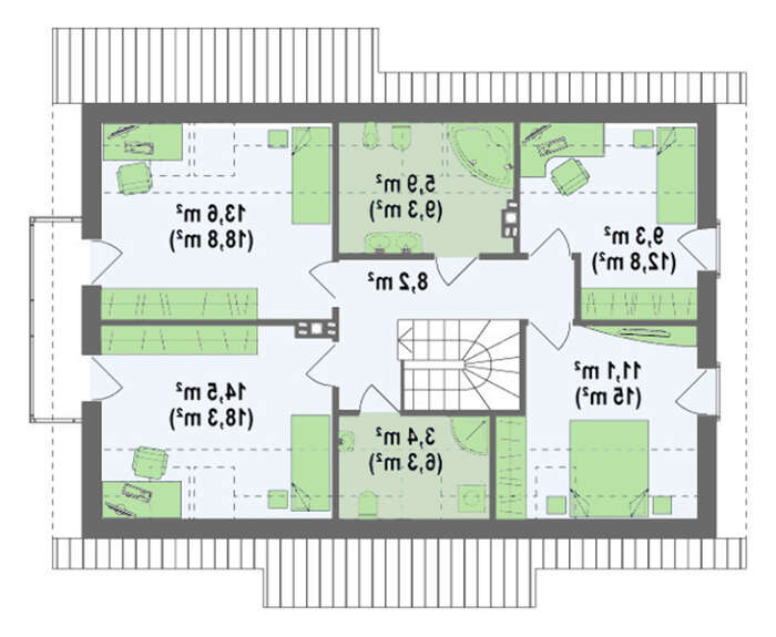 Также, небольшие изменения коснулись и мансарды. В самой большой спальне проектировщики убрали отдельную гардеробную и за счет этого расширили ванную комнату. Теперь ее можно совместить с прачечной.