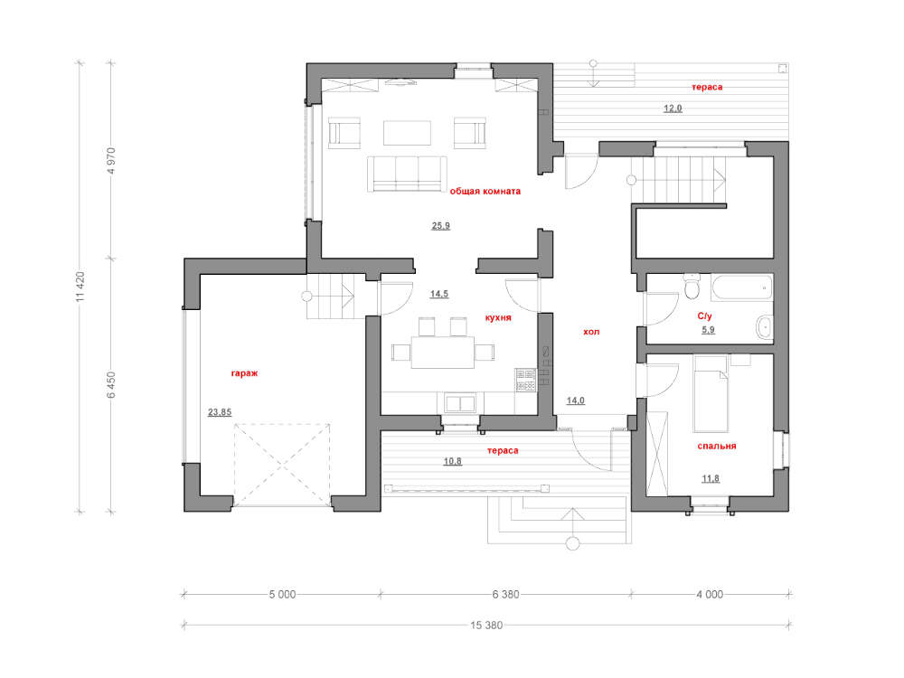 Проект коттеджа с гаражом и дополнительной комнатой на первом этаже 4M806