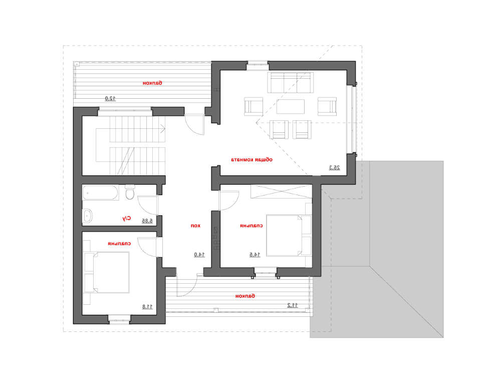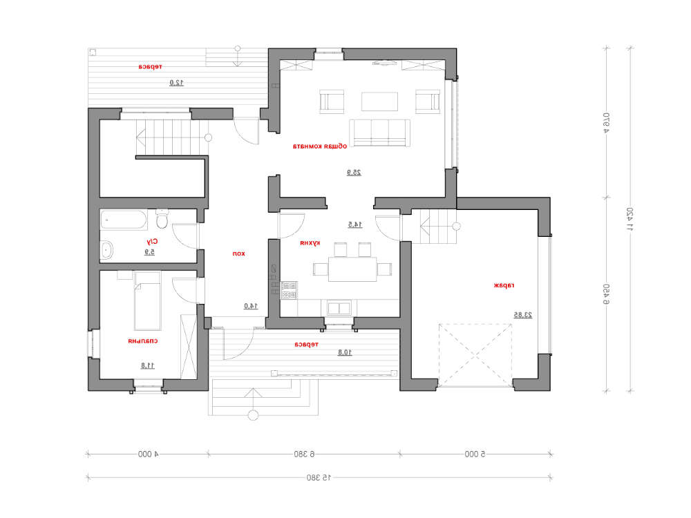 проект в зеркальном отображении позволит органично вписать дом в окружающий ландшафт.