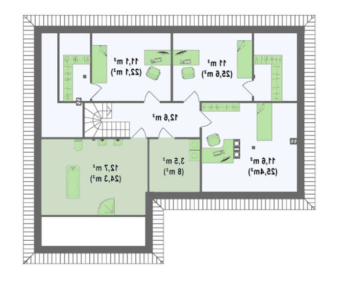 Комнаты для более молодых членов семейства расположена в мансарде. Три спальни, ванная и отдельная прачечная образуют уютную и функциональную ночную зону.