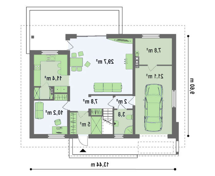 Проект дома с гаражом и кабинетом на первом этаже 4M138