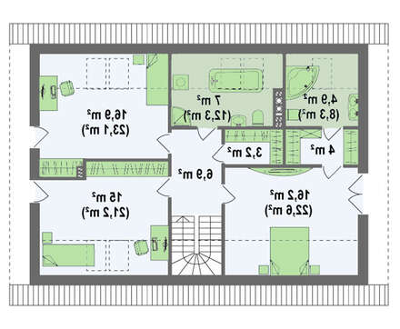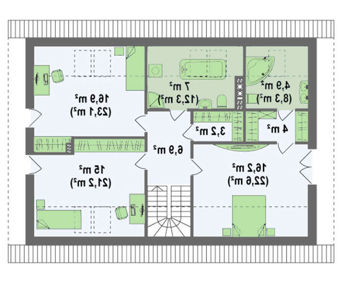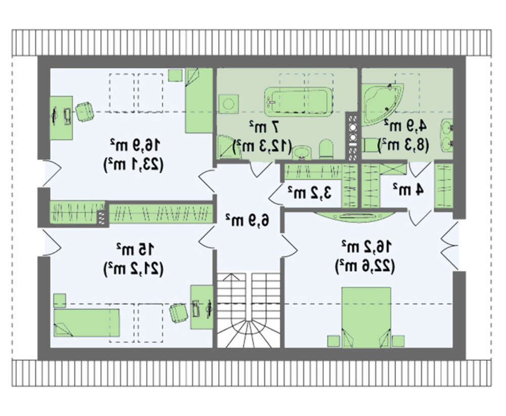 В мансарде находится ночная зона, состоящая из двух спален с встроенными шкафами и большой спальни, в которой расположенные собственная ванная и гардеробная.