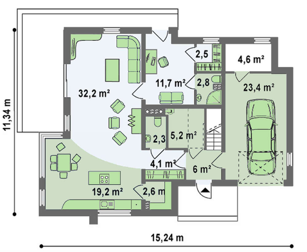 Да, возможно. Так же прошу обратить внимание на топочную. По готовому проекту она перенесена в помещение за гаражом (на эскизах она расположена посередине дома, что запрещено нормами). Отправили Вам на e-mail планировку с размерами помещений, укажите, пожалуйста какая ширина га >>>