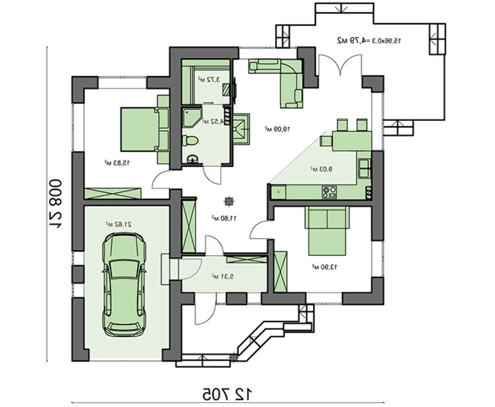 С такой проблемой в свое время столкнулся герой советского мультфильма Дядя Федор. Он был очень послушным и воспитанным мальчиком, уважающим своих родителей. Но, все-таки, однажды он ослушался их. Вместе с котом Матроскиным отправился на лето жить в деревню Простоквашино. Там к ним еще и Шарик присоединяется. В заброшенном доме, в котором они поселились, было не очень комфортно. И если бы они знали, что существует дом подобные дому 4M827, поселились бы именно в таком. Это просторный одноэтажный дом. В нем гармонично располагаются две спальни, просторная кухня и гостиная, есть две террасы, на которых можно прекрасно отдохнуть в хорошую погоду. И даже предусмотрено место для сауны. В таком доме хватит места не только для Дяди Федора и его друзей, но также и для мамы с папой, которые приедут погостить.