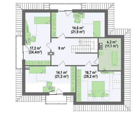 Проект содержит три раздела – Архитектурный, Конструктивный и Инженерный: водоснабжение, отопление, вентиляция, канализация, электроснабжение (приобретается за дополнительную плату) + Пояснительная записка.