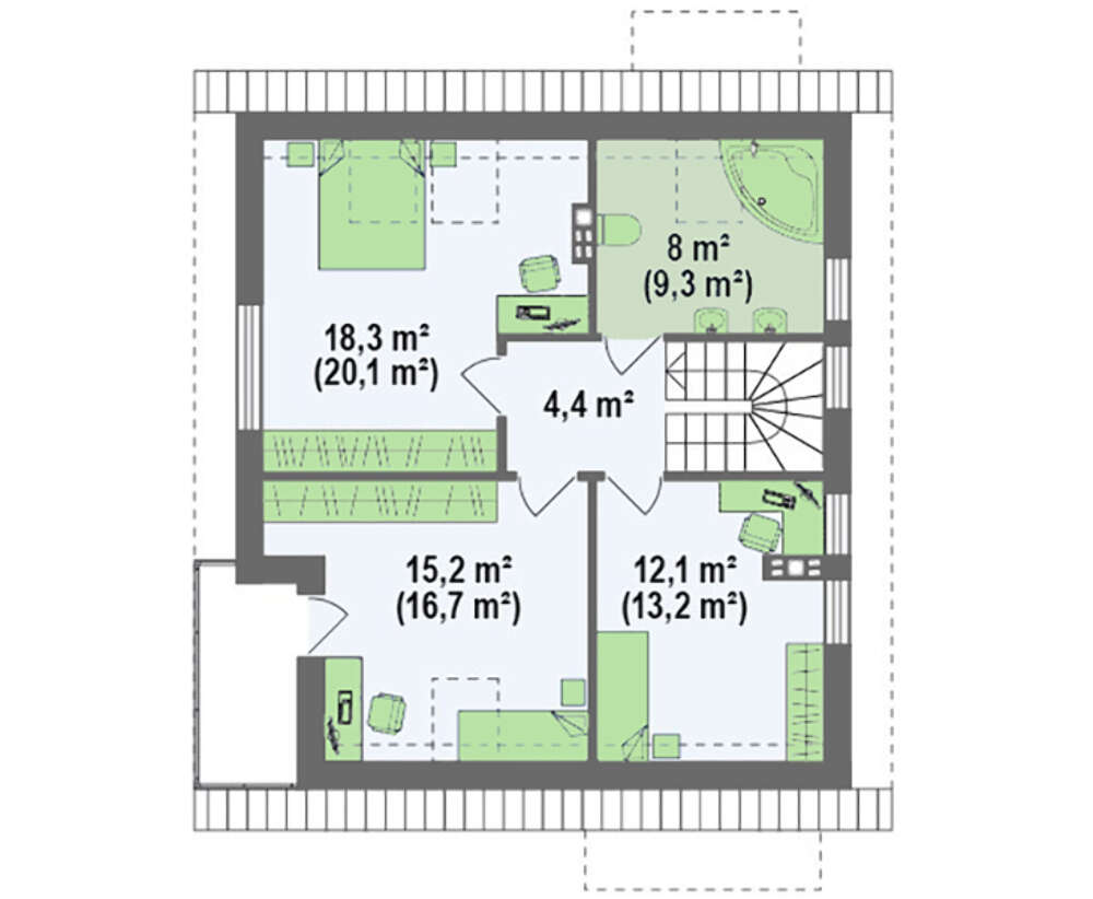 • 4M266 Проект дома с мансардой, дополнительной комнатой на первом этаже