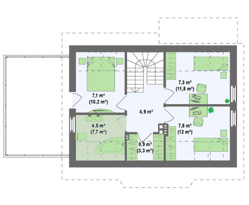 • 4M208 Проект дома с мансардой, гаражом и уютной красивой террасой