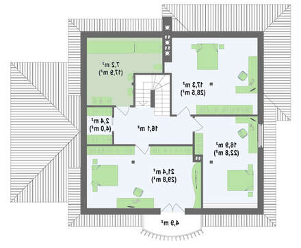 На втором этаже находятся три уютные спальни. В самой большой из них есть выход на балкон, на котором так приятно провести время в теплый летний день. Также в мансарде расположена вместительная кладовая и большая ванная комната.