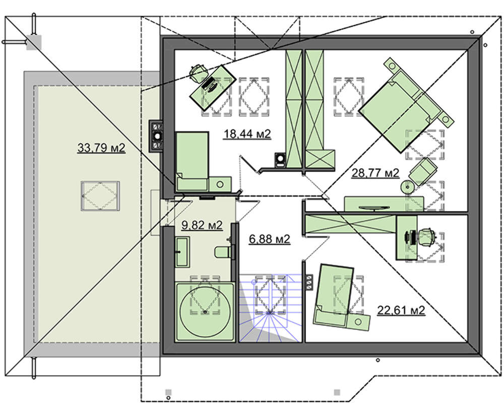 Проект большого дома с мансардой и четырехскатной крышей | DOM4M Россия | ДОМ4М в России