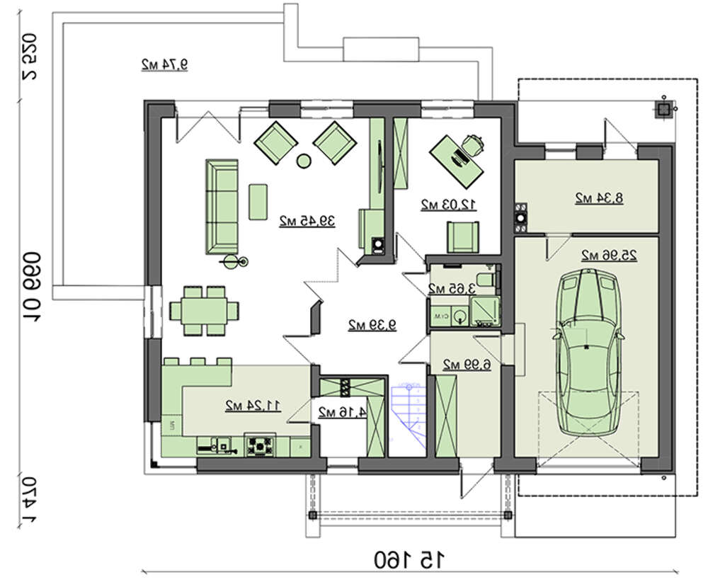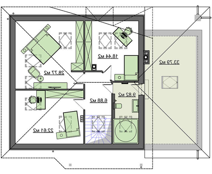 проект в зеркальном отображении позволит органично вписать дом в окружающий ландшафт.