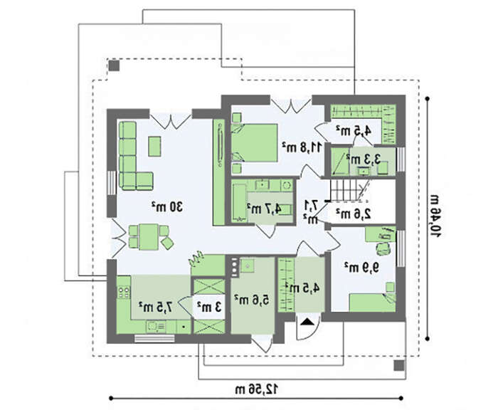 проект в зеркальном отображении позволит органично вписать дом в окружающий ландшафт.