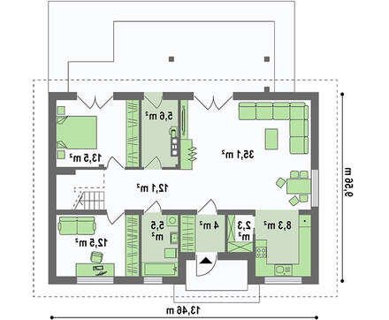 проект в зеркальном отображении позволит органично вписать дом в окружающий ландшафт.