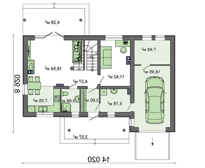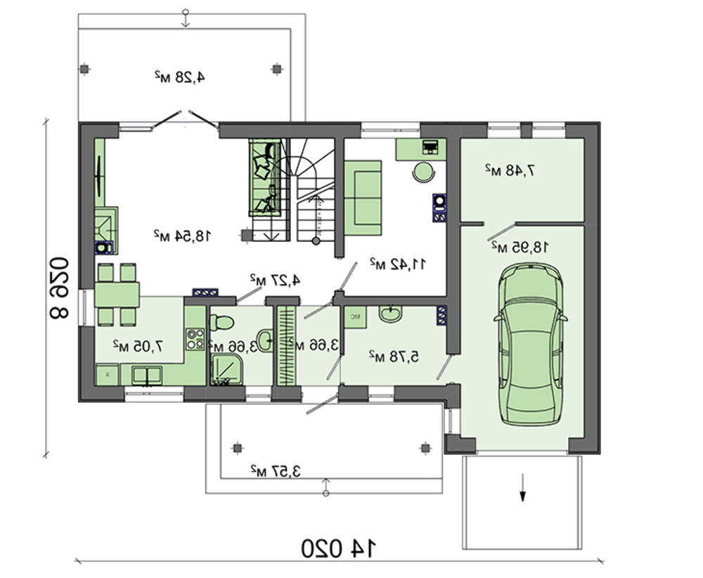 Проект дома с мансардой по типу 4M188 с гаражом на одну машину 4M188G