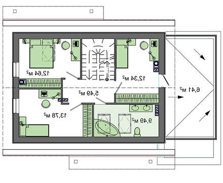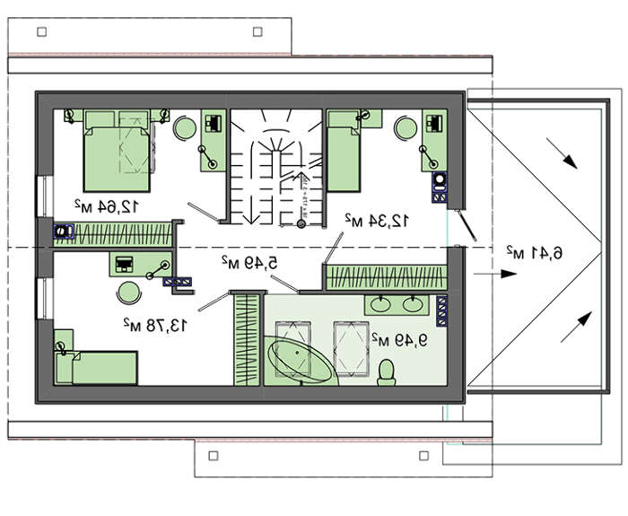• 4M188G Проект дома с мансардой по типу 4M188 с гаражом на одну машину