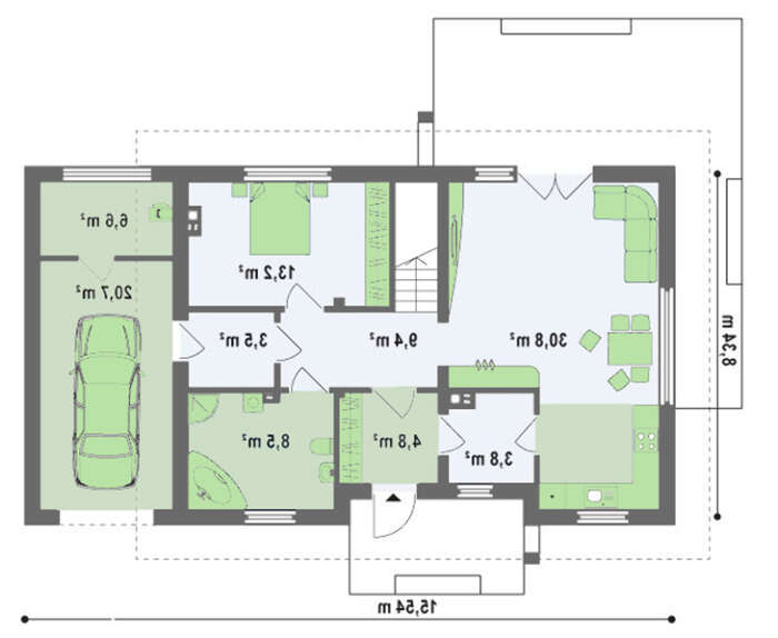 Высота дома:7.38 м