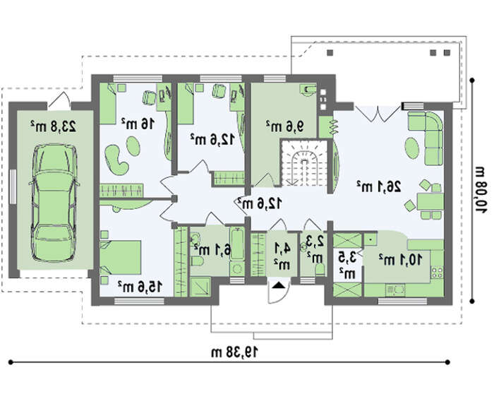 проект в зеркальном отображении позволит органично вписать дом в окружающий ландшафт.