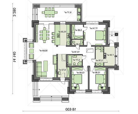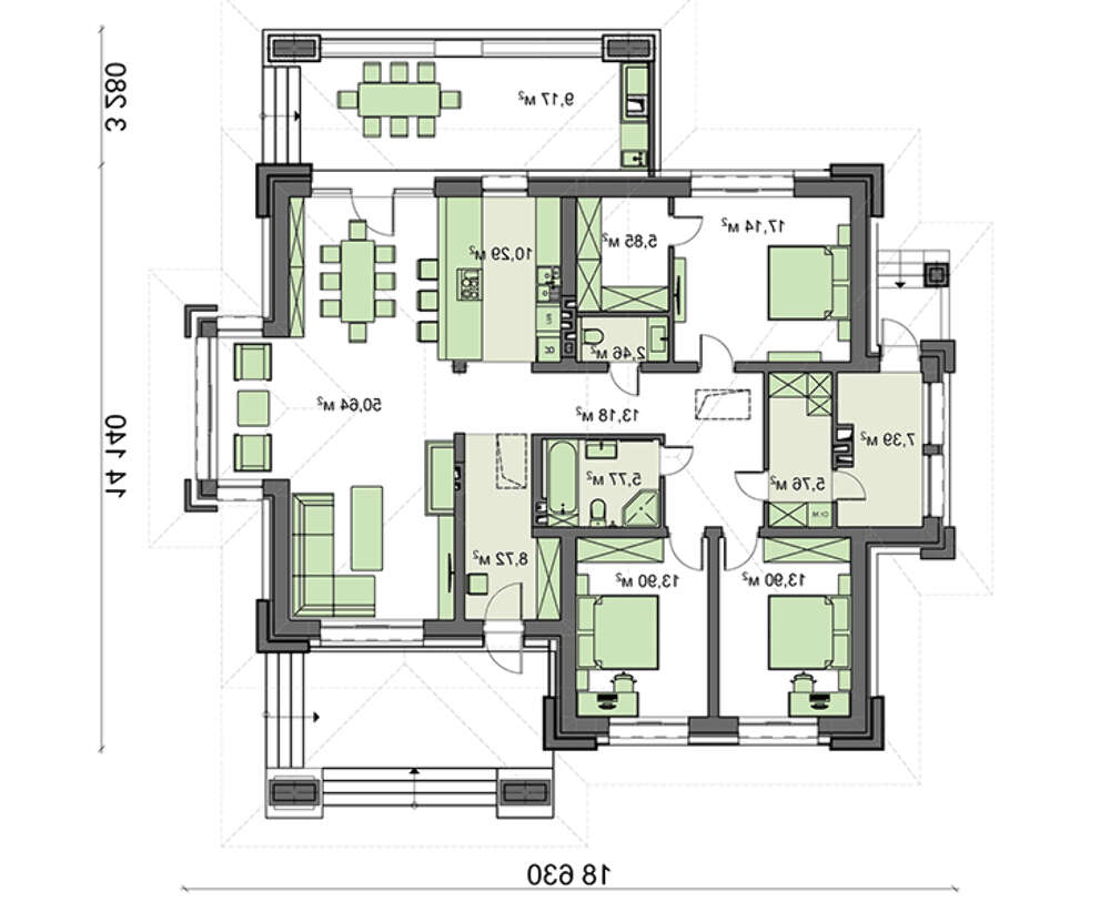проект в зеркальном отображении позволит органично вписать дом в окружающий ландшафт.