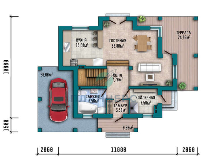 | Кровля: | металлочерепица, керамическая черепица, битумная |
