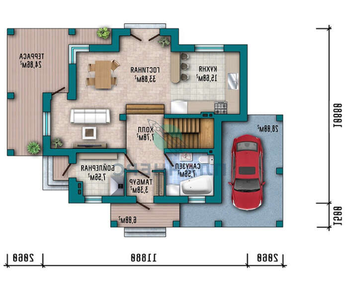 проект в зеркальном отображении позволит органично вписать дом в окружающий ландшафт.
