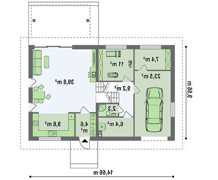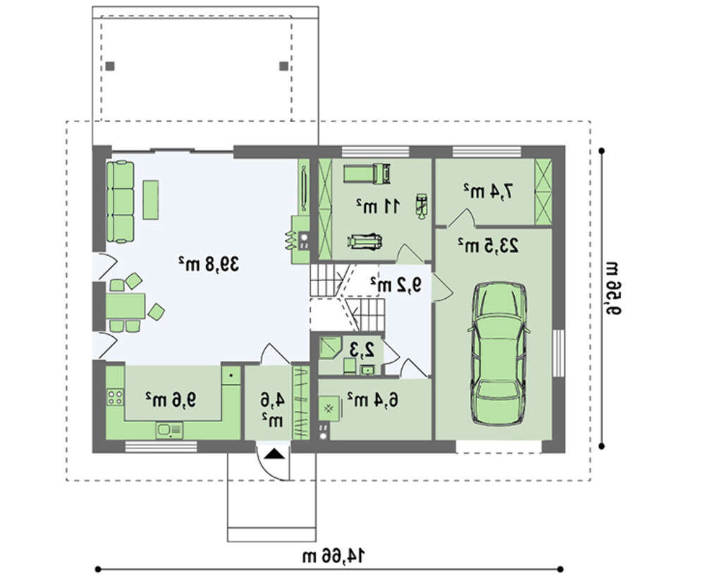 Благоустроенность проживания создается наличием множества комнат. Гараж рассчитан на хранение одного автомобиля. В комфортных условиях примыкающей мастерской удобно выполнять ремонт автомашины и размещать весь потребный для этого сервиса инструмент.